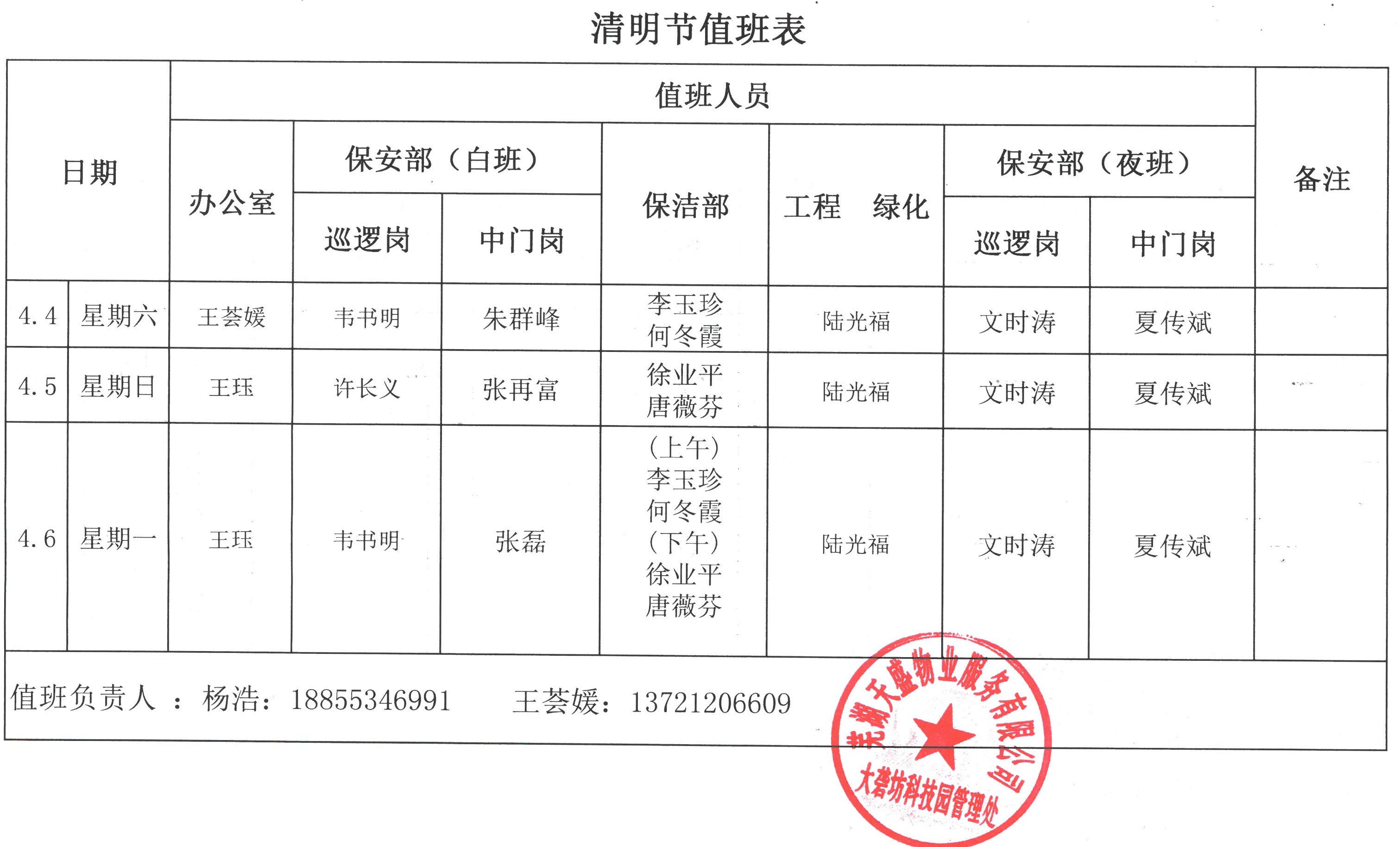 4.各企業(yè)在放假期間如需加班,請報送至我公司物業(yè)后勤部眭婷處(QQ:231678798,微信:15955317886,電話:0553-5791890),便于突發(fā)情況緊急聯系。