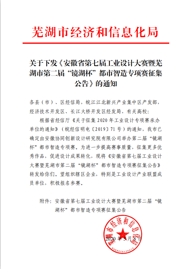 為進一步加快蕪湖市現(xiàn)代制造產(chǎn)業(yè)的升級轉(zhuǎn)型,加速工業(yè)設計與制造的融合,培養(yǎng)工業(yè)設計人才,決定舉辦安徽省第七屆工業(yè)設計大賽暨蕪湖市第二屆“鏡湖杯”都市智造專項賽。