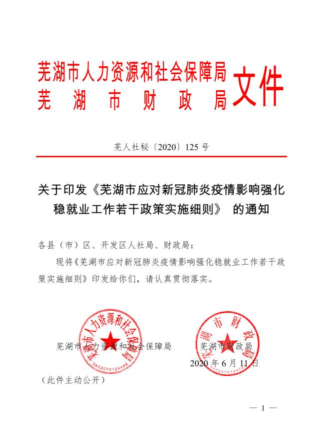 關(guān)于印發(fā)《蕪湖市應(yīng)對新冠肺炎疫情影響強(qiáng)化 穩(wěn)就業(yè)工作若干政策實(shí)施細(xì)則》的通知