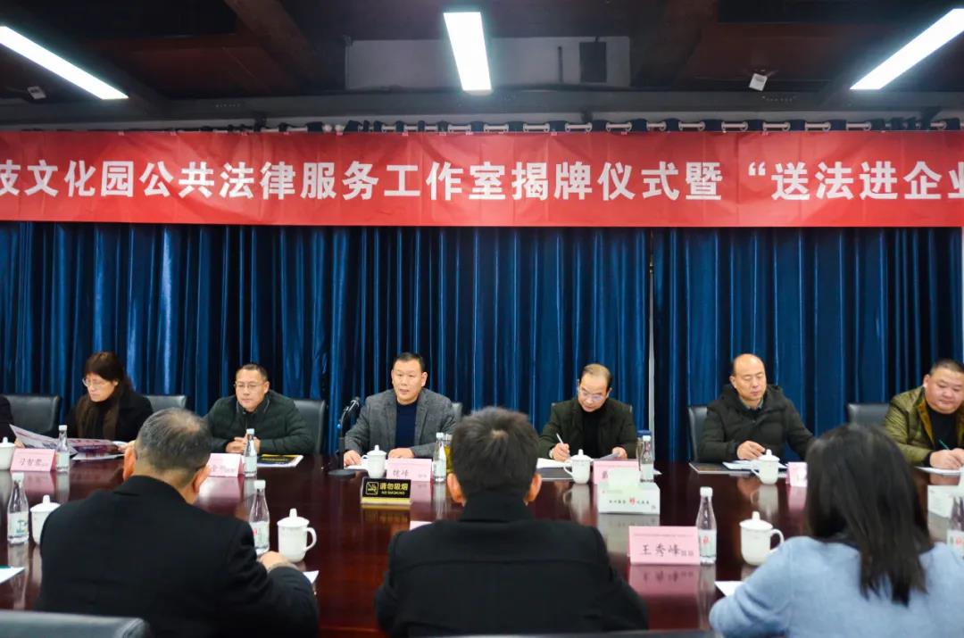 12月11日,大礱坊科技文化園公共法律服務(wù)工作室揭牌儀式暨“送法進企業(yè)”活動在園開展,區(qū)司法局、區(qū)委政法委、區(qū)法院、區(qū)檢察院、區(qū)工商聯(lián)、區(qū)經(jīng)信局、區(qū)委常委、政法委書記魏峰及各成員單位、園區(qū)負(fù)責(zé)人、企業(yè)代表等50余人出席活動。